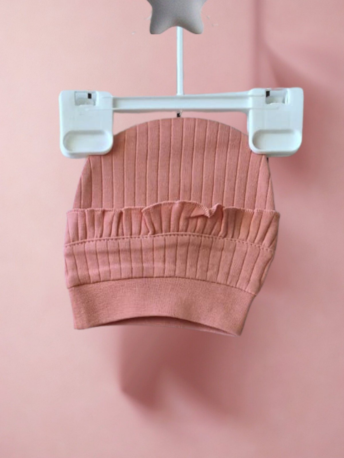 ✔ Şapka – Pantolon ve üstle tam uyumlu, zarif yavru ağzı tonlarında.