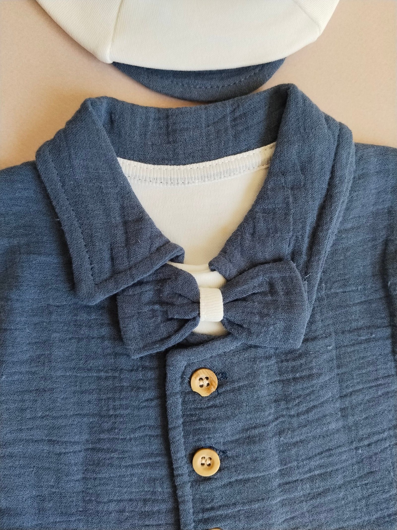 ✔ Lacivert papyonlu yelek – Yeleğin üzerindeki düğme detayları ile şıklığı tamamlayan, rahat ve şık tasarım.